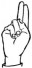 На ћирилици написано ВАЛЕНТИНА ЦМИЉАНИЋ састоји се из 17 слова [?]. Исписано ћириличном једноручном азбуком за глувонеме: